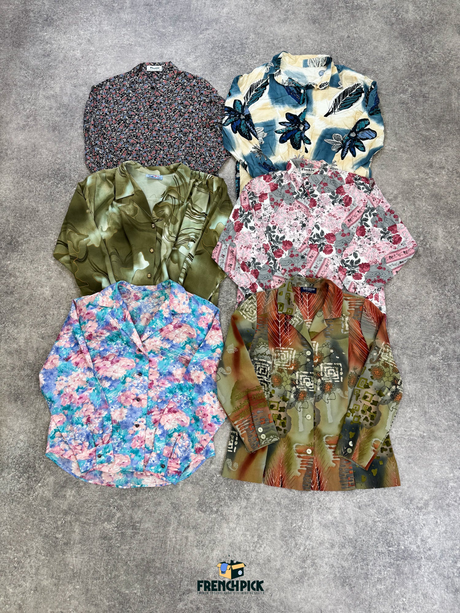 Cette box contient une sélection exclusive de chemisiers manches longues à motifs, de seconde main. Vous y découvrirez des modèles vintage aux coupes variées : ajustées, droites ou encore fluides. Ces pièces se distinguent par leurs imprimés : pois, formes géométriques, fleurs et bien d’autres.